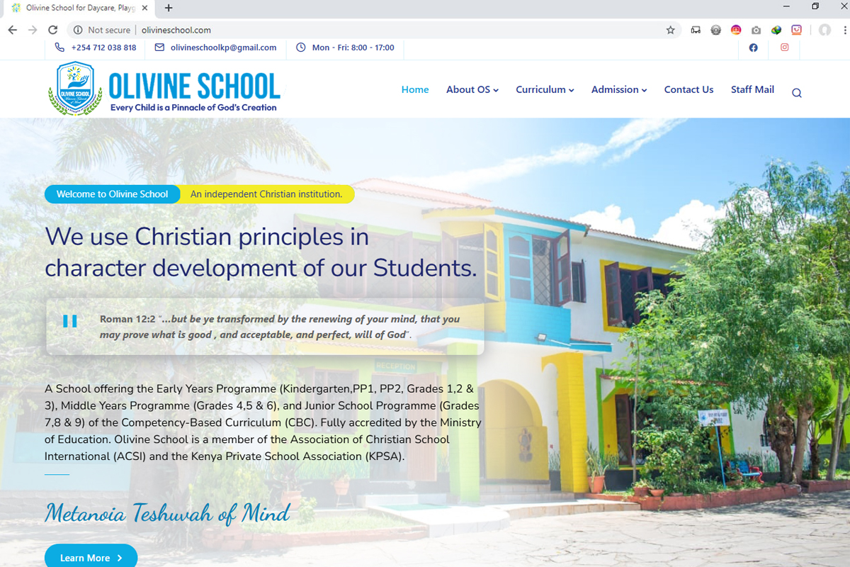 Olivine School is situated in the serene and beautiful environment of Nyali, Beach road drive, we offer Daycare/Toddler programs, Playgroup/Pre school programs, Kindergarten and Primary School program based on the National Curriculum.
